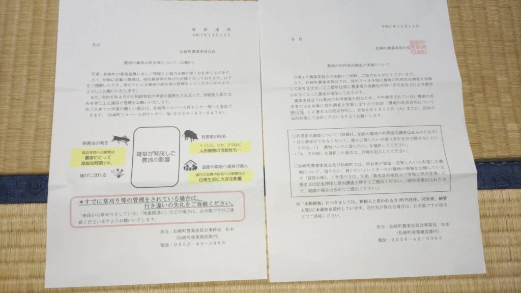 農業委員会からの警告(適正管理の通知)です。