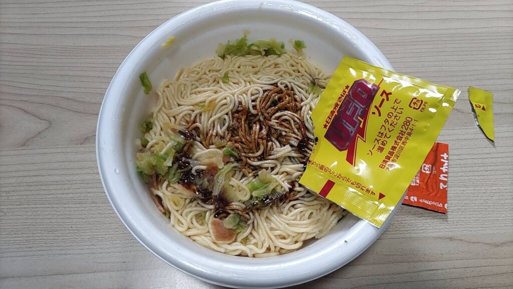 通常版のU.F.O.は、ストレートで喉越しの良い麺が特徴ですが、